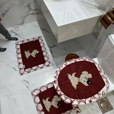 Jogos de banheiro premium com 3 peças cada.